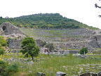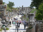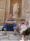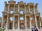 Z rzeczy przyjemniejszych: wczoraj widzieliśmy Efez i okolice. Dla przeciętnego turysty Efez jest dużo wdzięczniejszym do zwiedzania antycznym miastem niż Troja. Prawa entropii zadziałały tu znacznie słabiej i jest co pooglądać. Duże wrażenie robi amfiteatr (świetna akustyka) i resztki bogato zdobionej biblioteki Celsusa. Efez zajął nam około 4 godziny, resztę dnia spędziliśmy na obejrzeniu świątyni św. Jana, który też to święty ma tu miejsce spoczynku, oraz na ogólnopojętym chilloutcie, którego jednym z elementów było pstrykanie nocnych fotek miasta w świetle księżyca w pełni, przy puszkowym browarze (ach te oszczędności). Tego dnia podjęliśmy też decyzję o opuszczeniu Selcuk'u i zakupiliśmy bilety na podróż do Pamukkale - siedziby jednego z tureckich cudów natury.